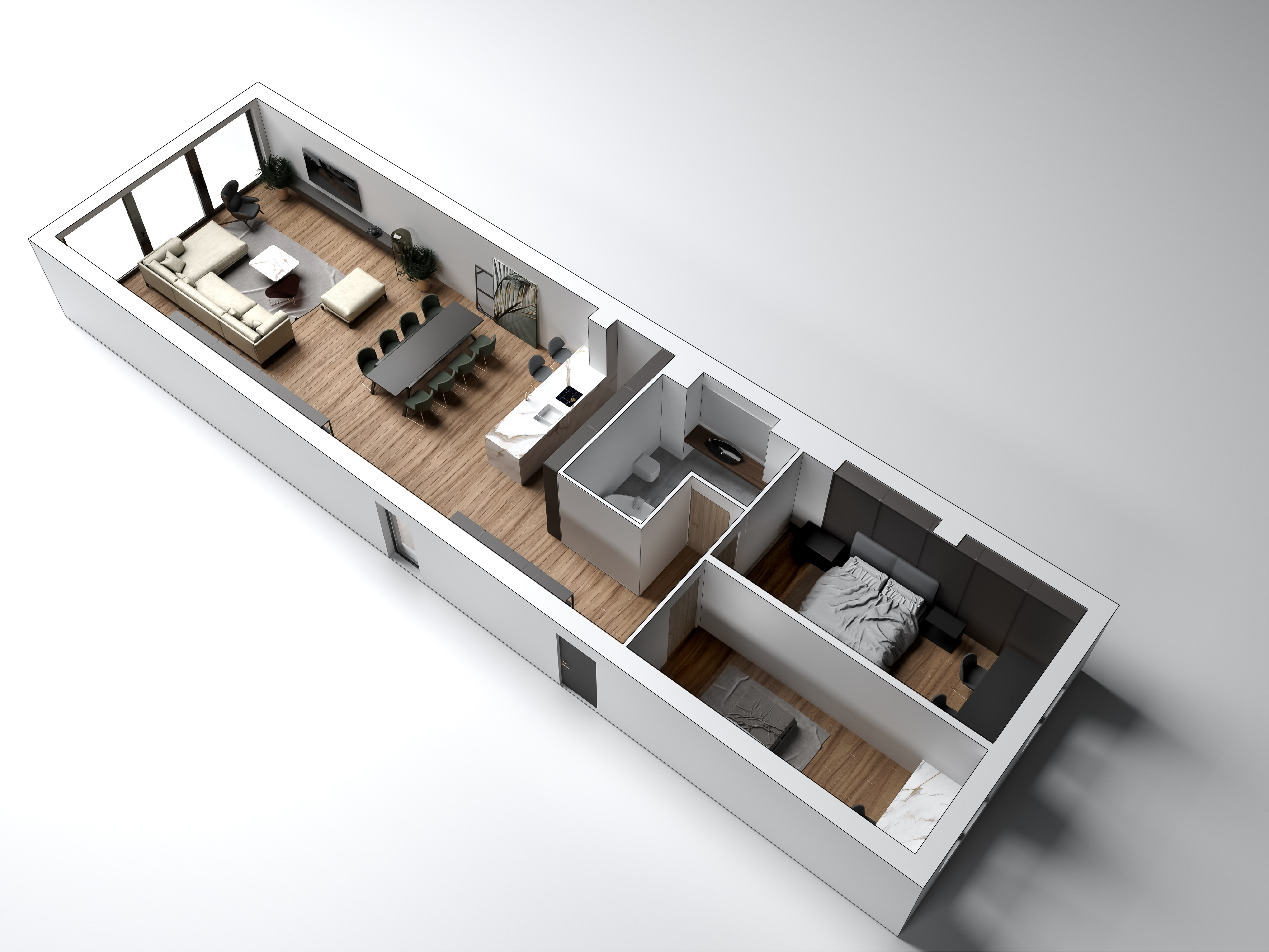 Wyposażony w balkony po obu stronach co daje dostęp do nich z praktycznie każdego pomieszczenia. Istnieje możliwość własnej aranżacji wnętrza.